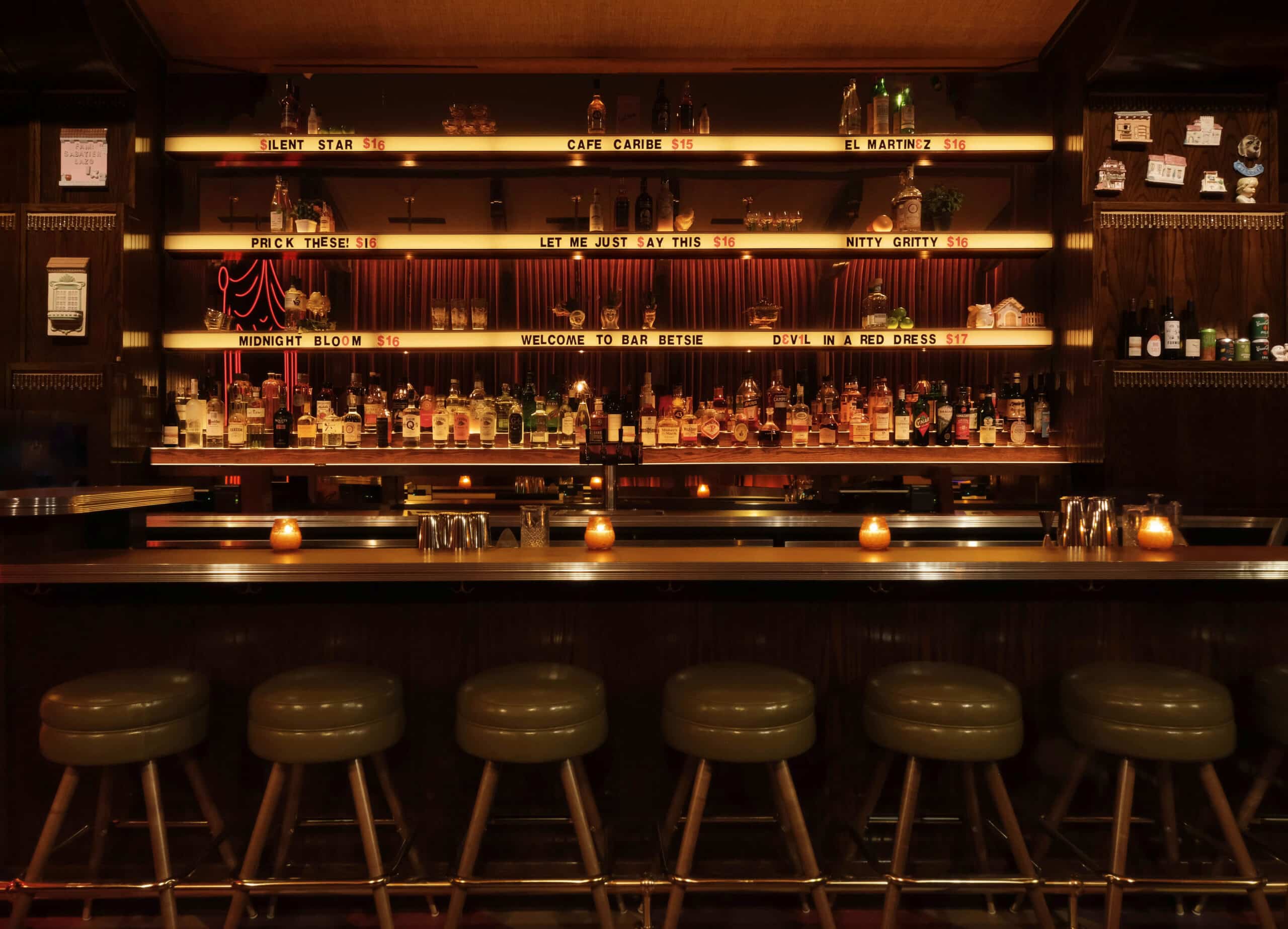 Bar Betsie was conceived as a moody, transportive hideaway—equal parts neighborhood bar and theatrical destination. The goal was to create a space that felt both nostalgic and novel: familiar in its retro influences but unexpected in its narrative-driven details. Streetsense crafted an interior that evokes intimacy and drama, where every element contributes to a larger story.