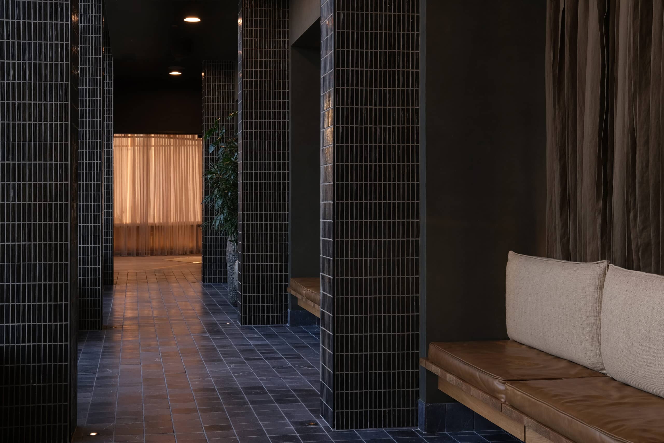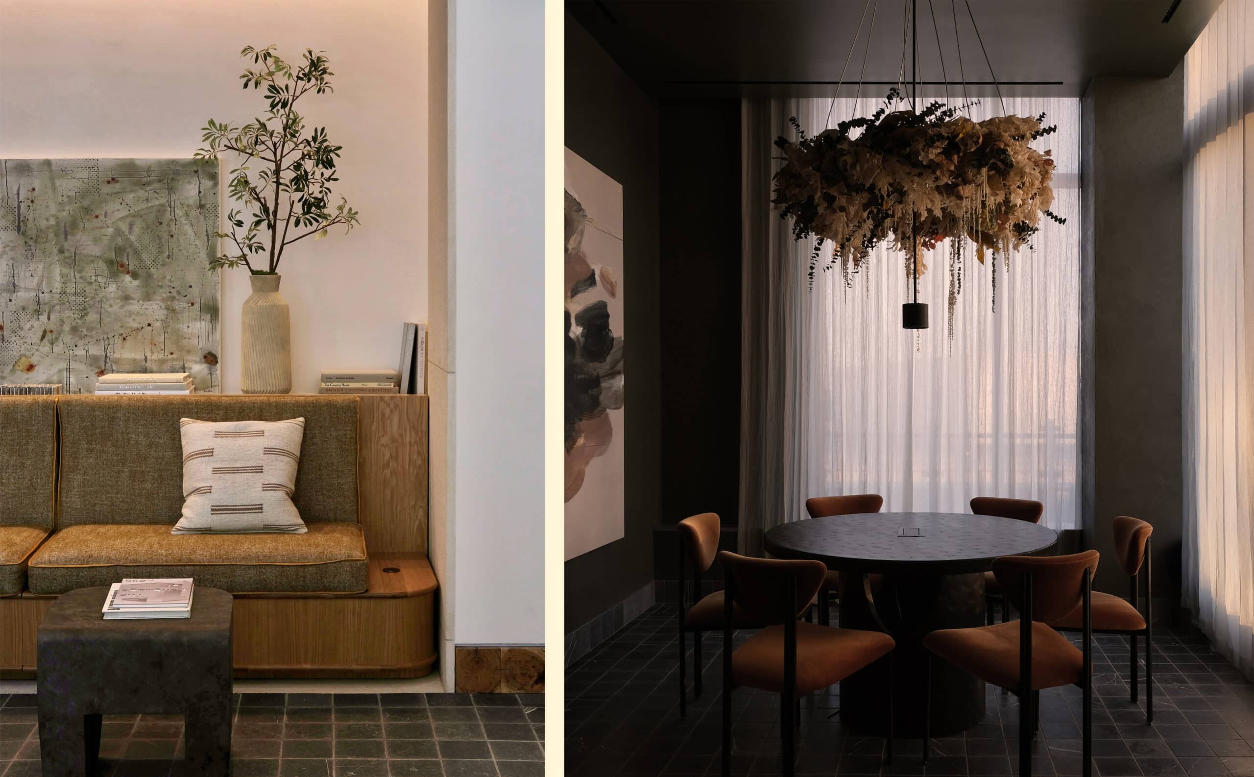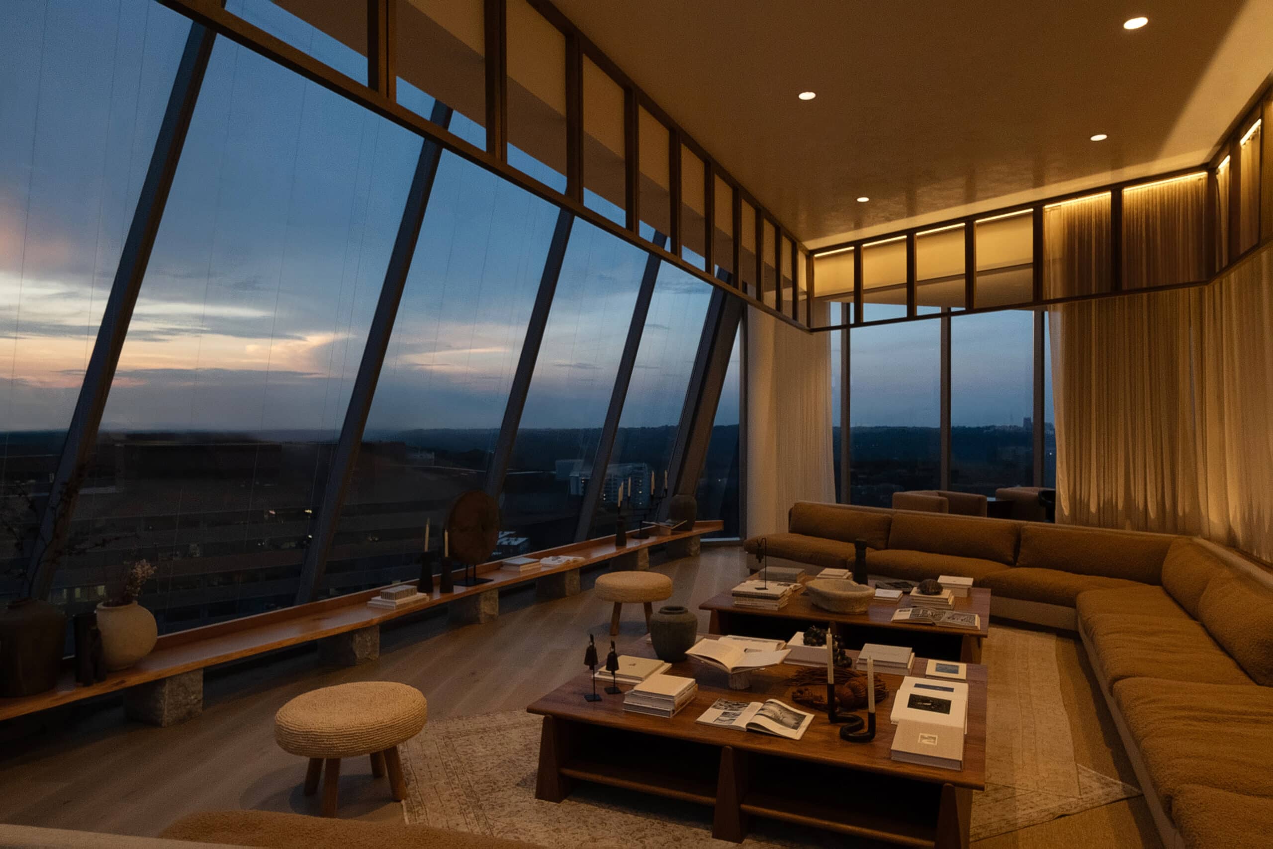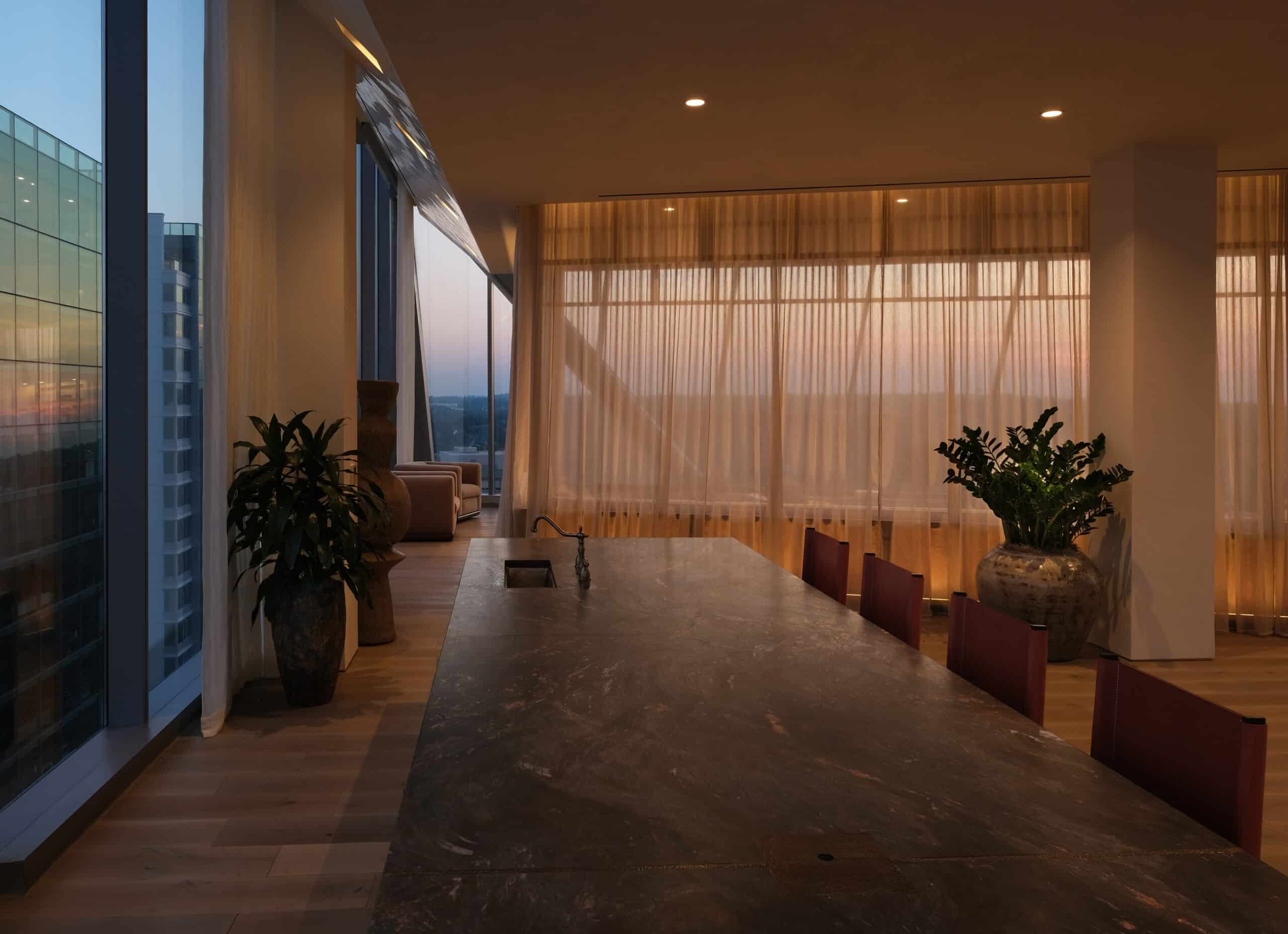 The Wendy brings a refined minimalism to a series of high-contrast spaces defined by light, texture, and craft. Hammered limestone, end grain oak, and marble lend weight and permanence to an interior palette that alternates between soft, airy openness and moody, dramatic depth.